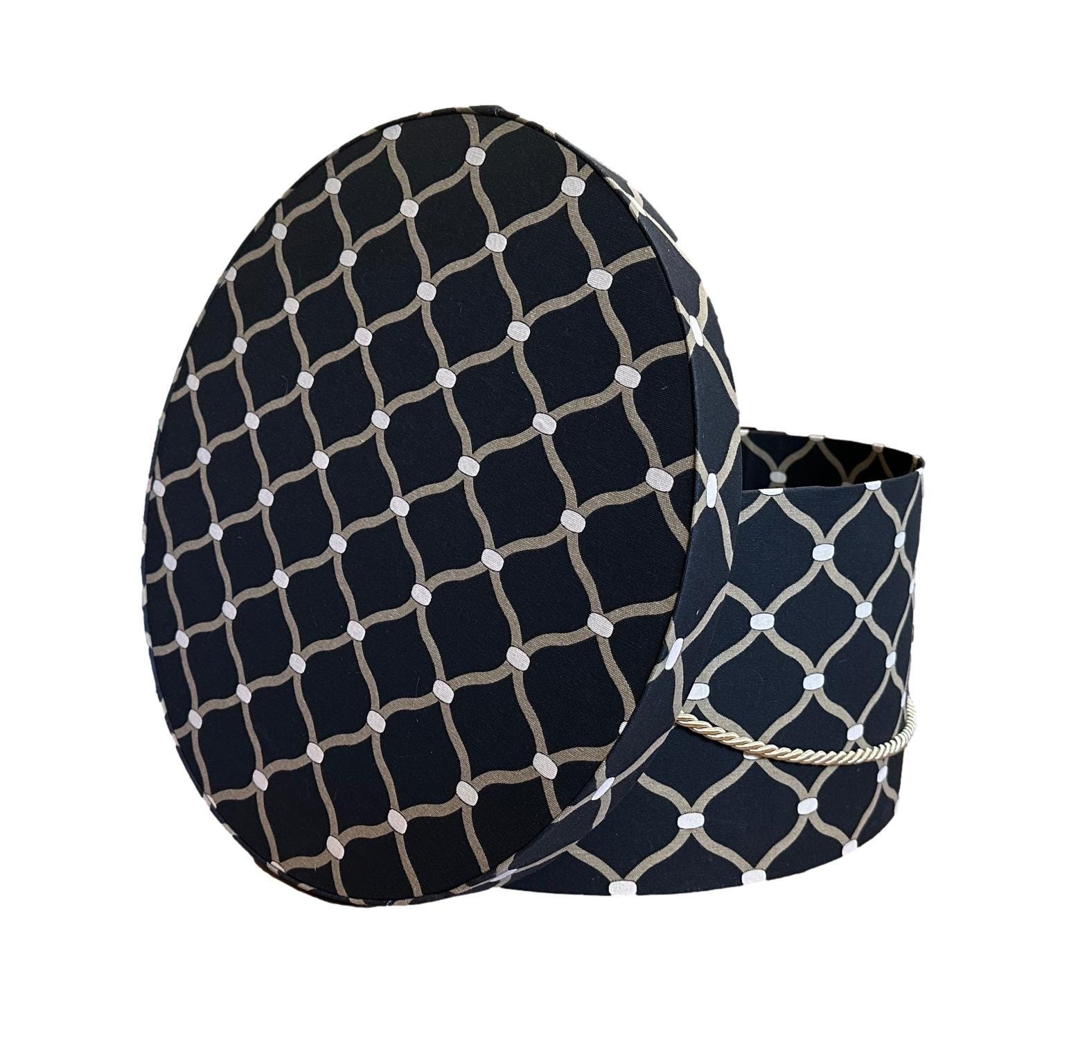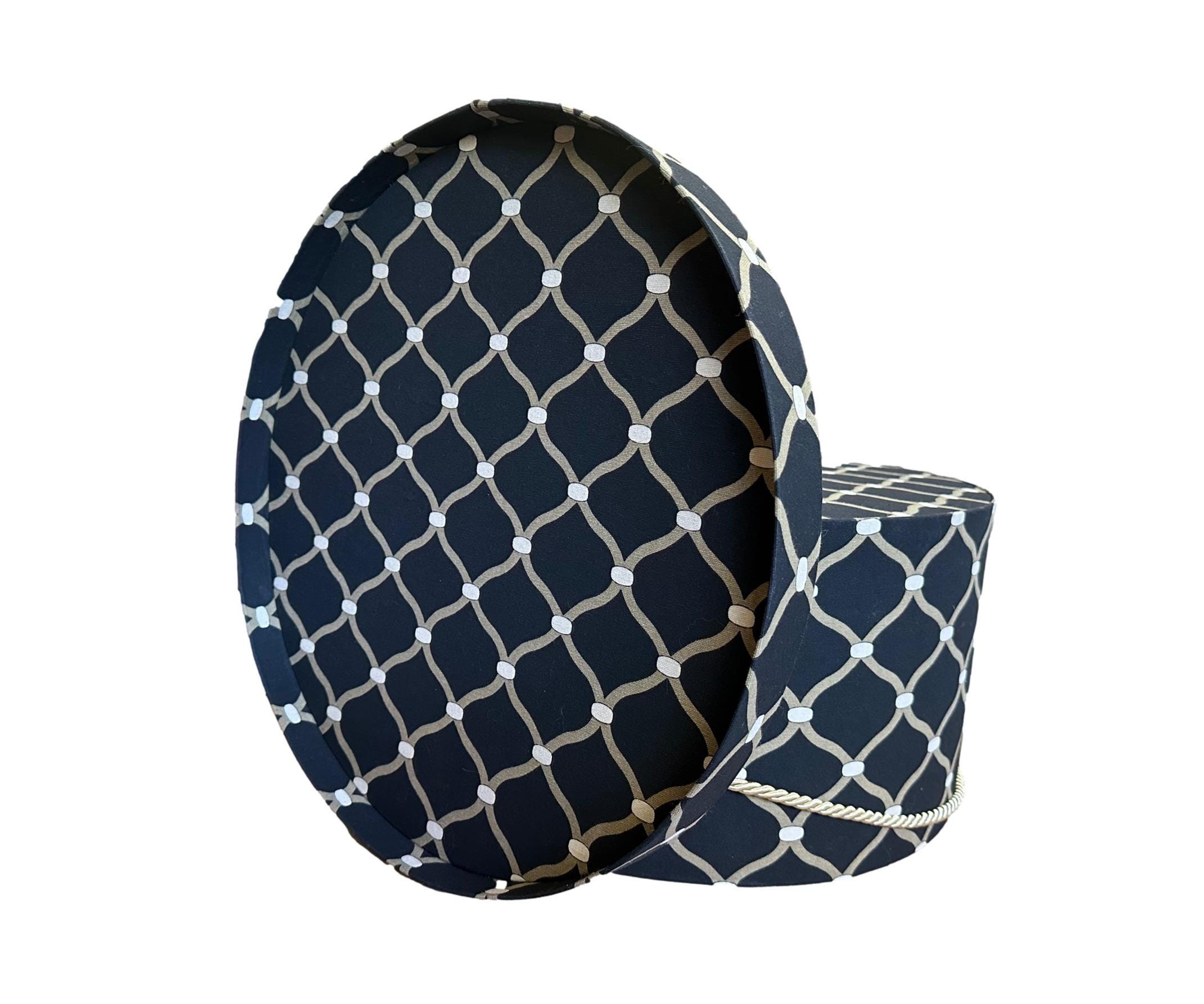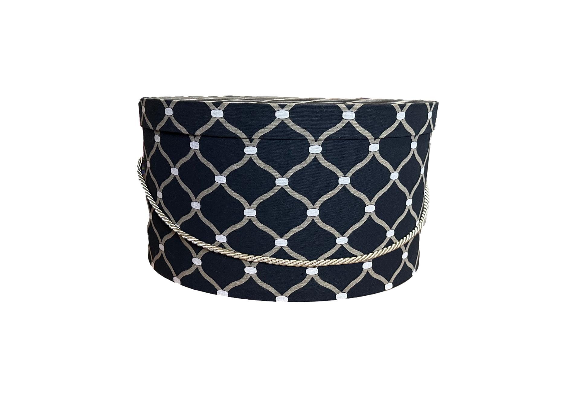 Beautiful Large Hat Box in Black with Gold Pattern Fabric
