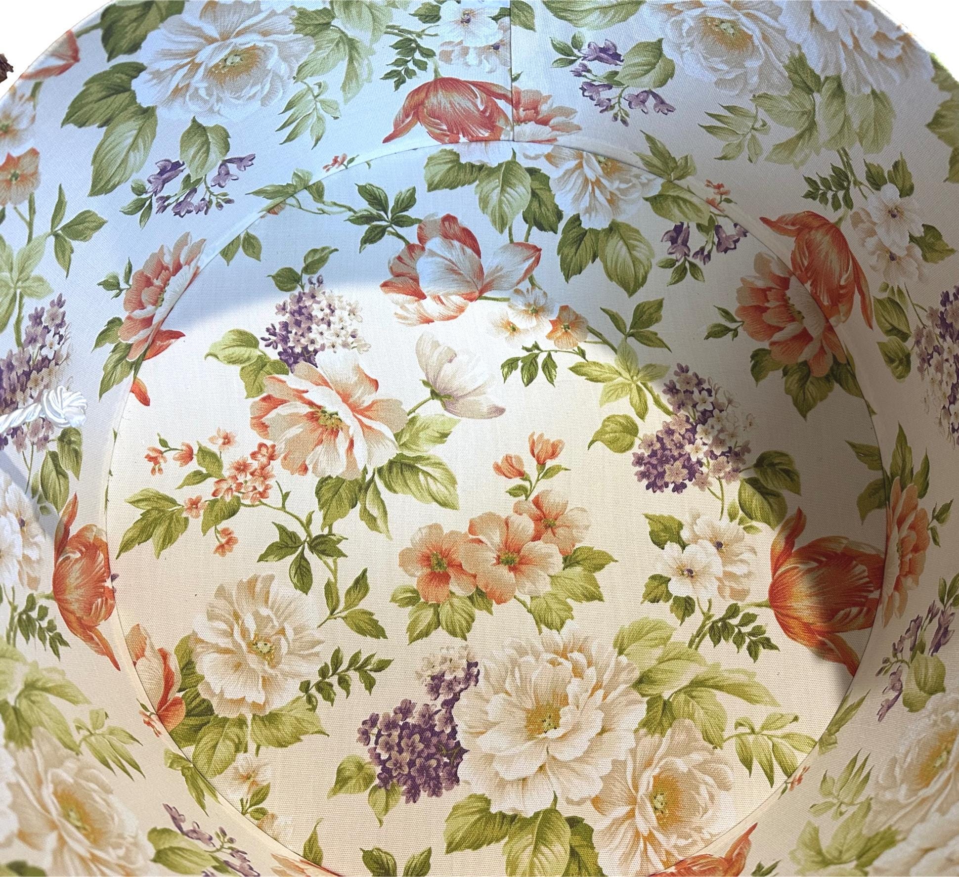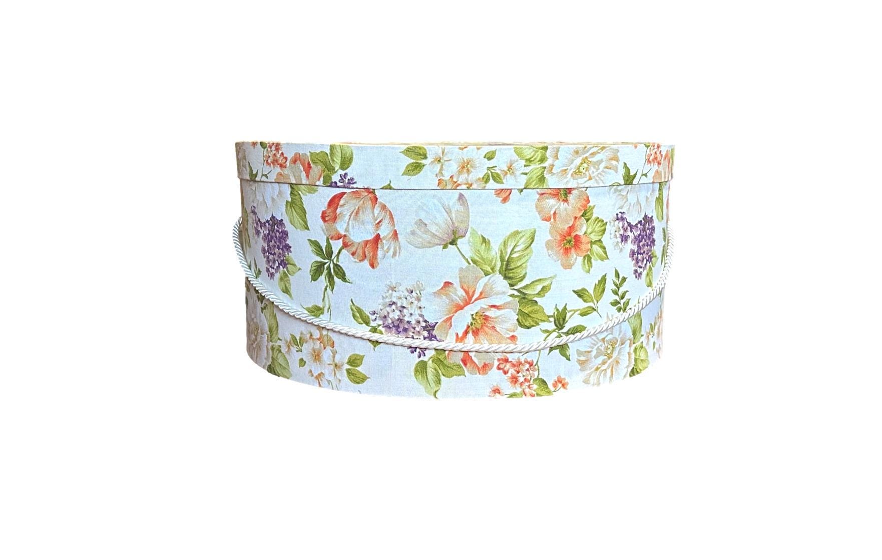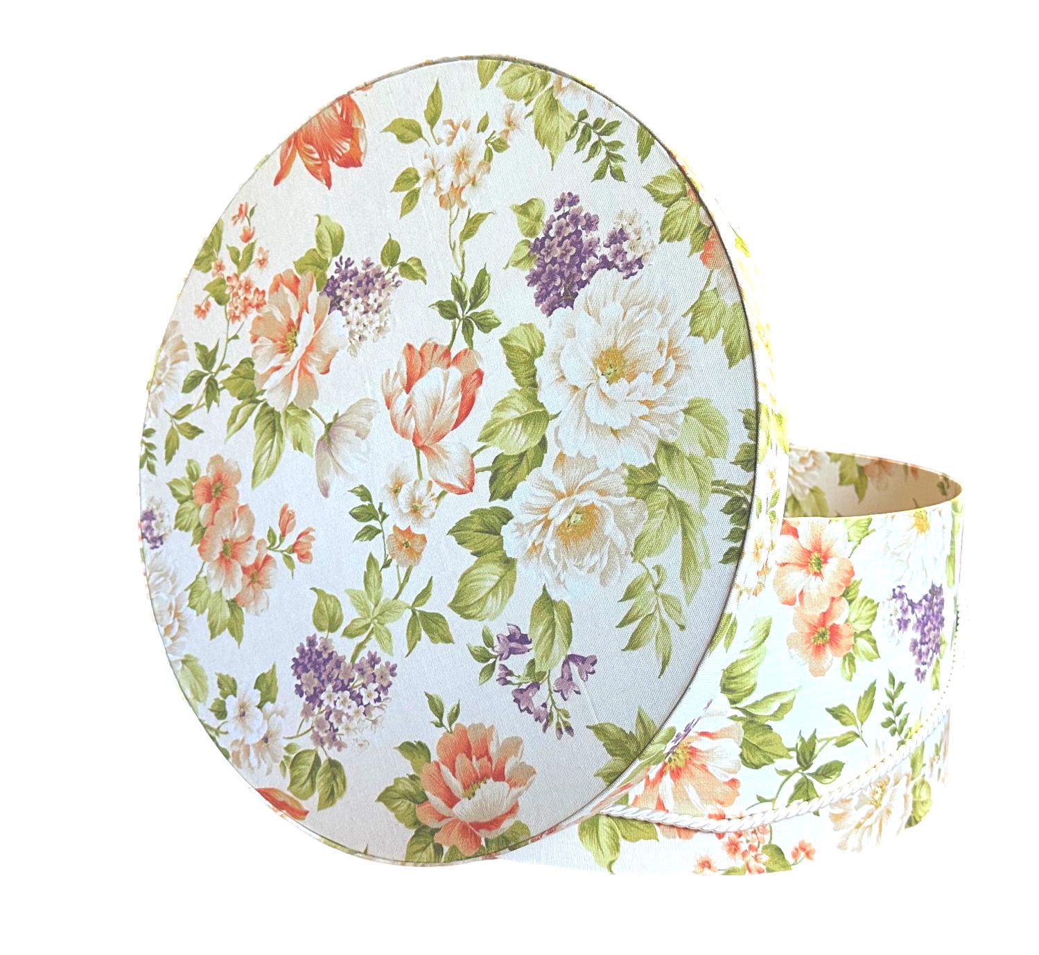 Extra Large Hat Box in Orange, Purple and White Floral Fabric