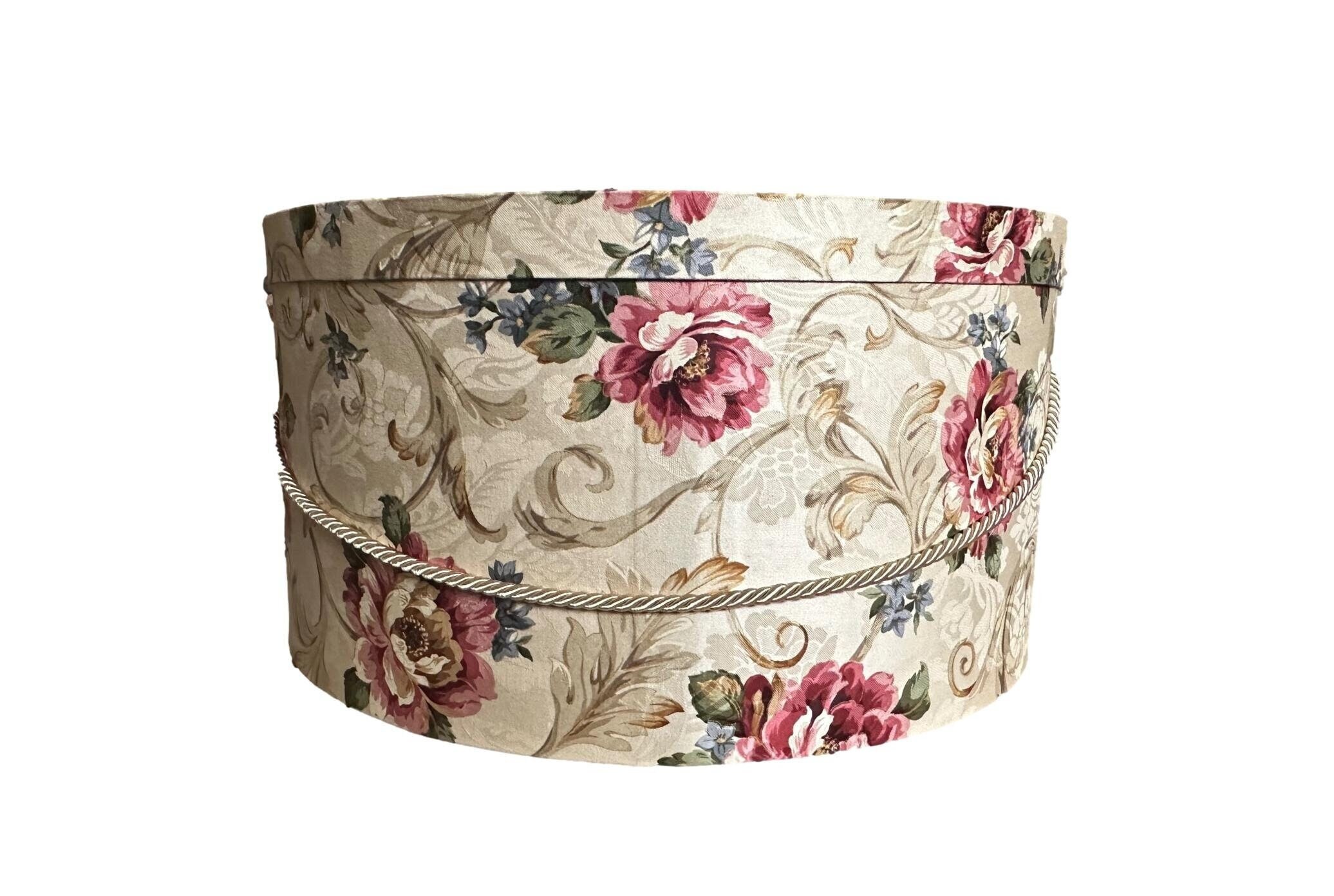 20”x10” Hat Box in beautiful Floral Scroll Fabric