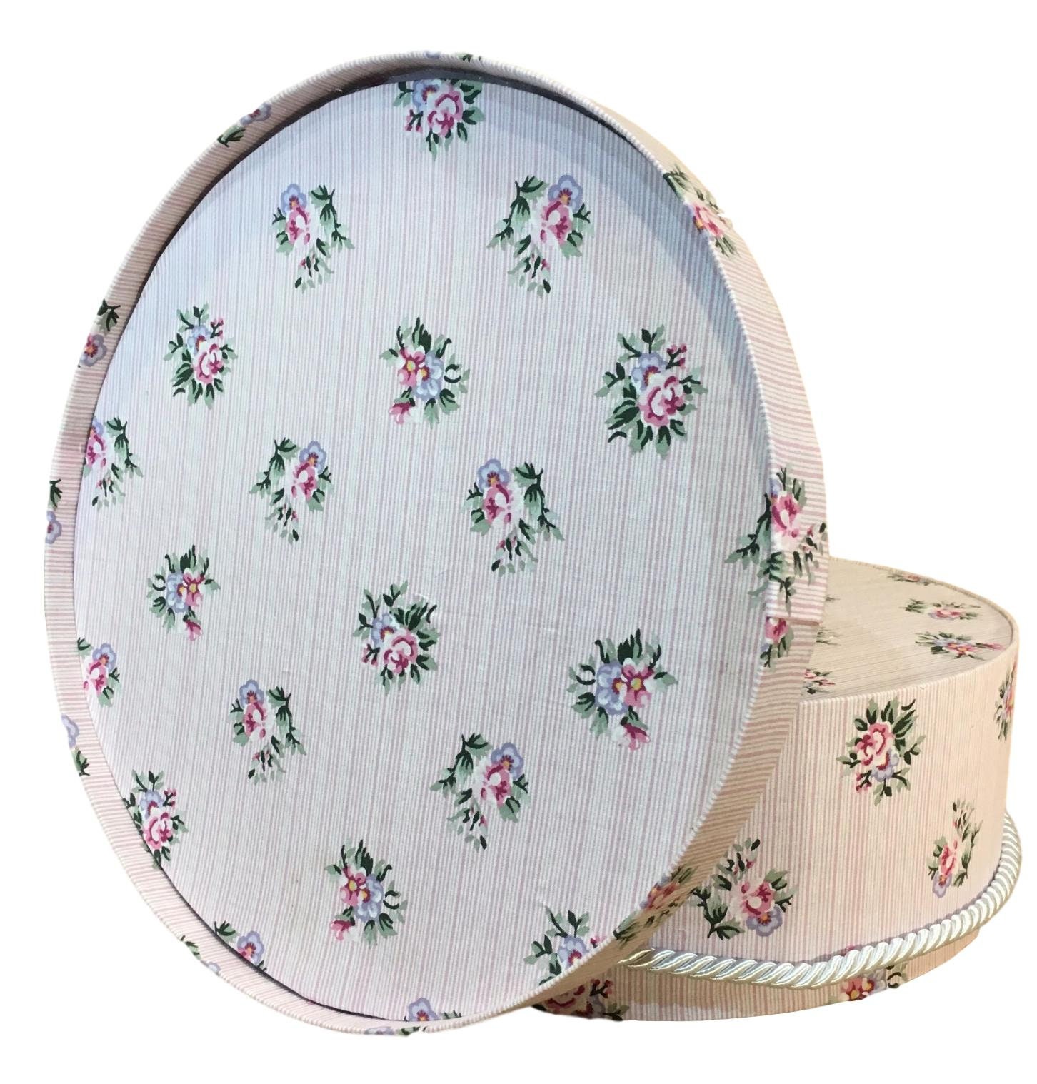 Beautiful Artisan Crafted Hat Box in Pink Floral Fabric