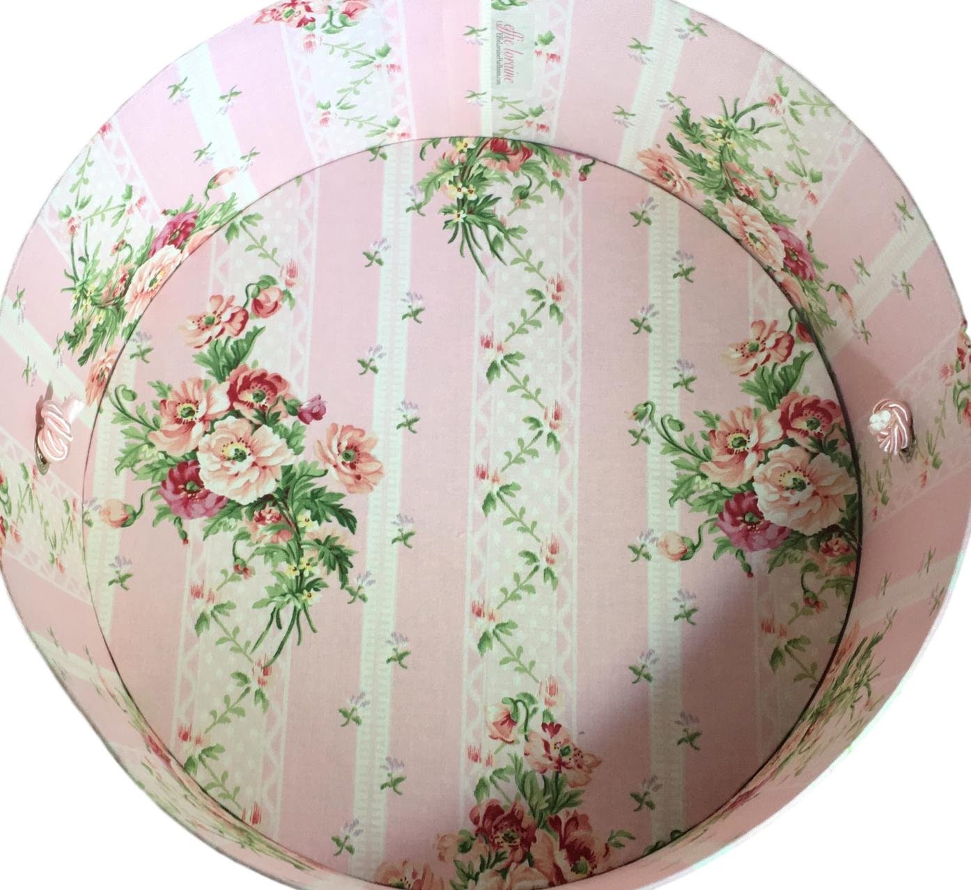 Beautiful Hat Box covered in Sweet Pink Floral Stripe Fabric
