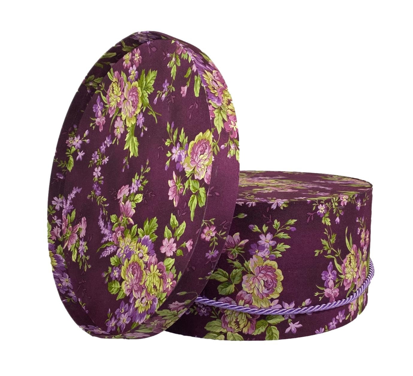 Gorgeous hat box, just as pictured. Beautiful vintage-looking fabric & nice size. Fast shipping too!