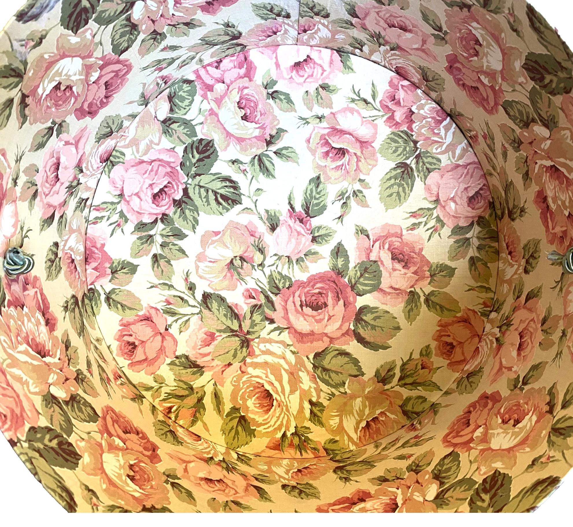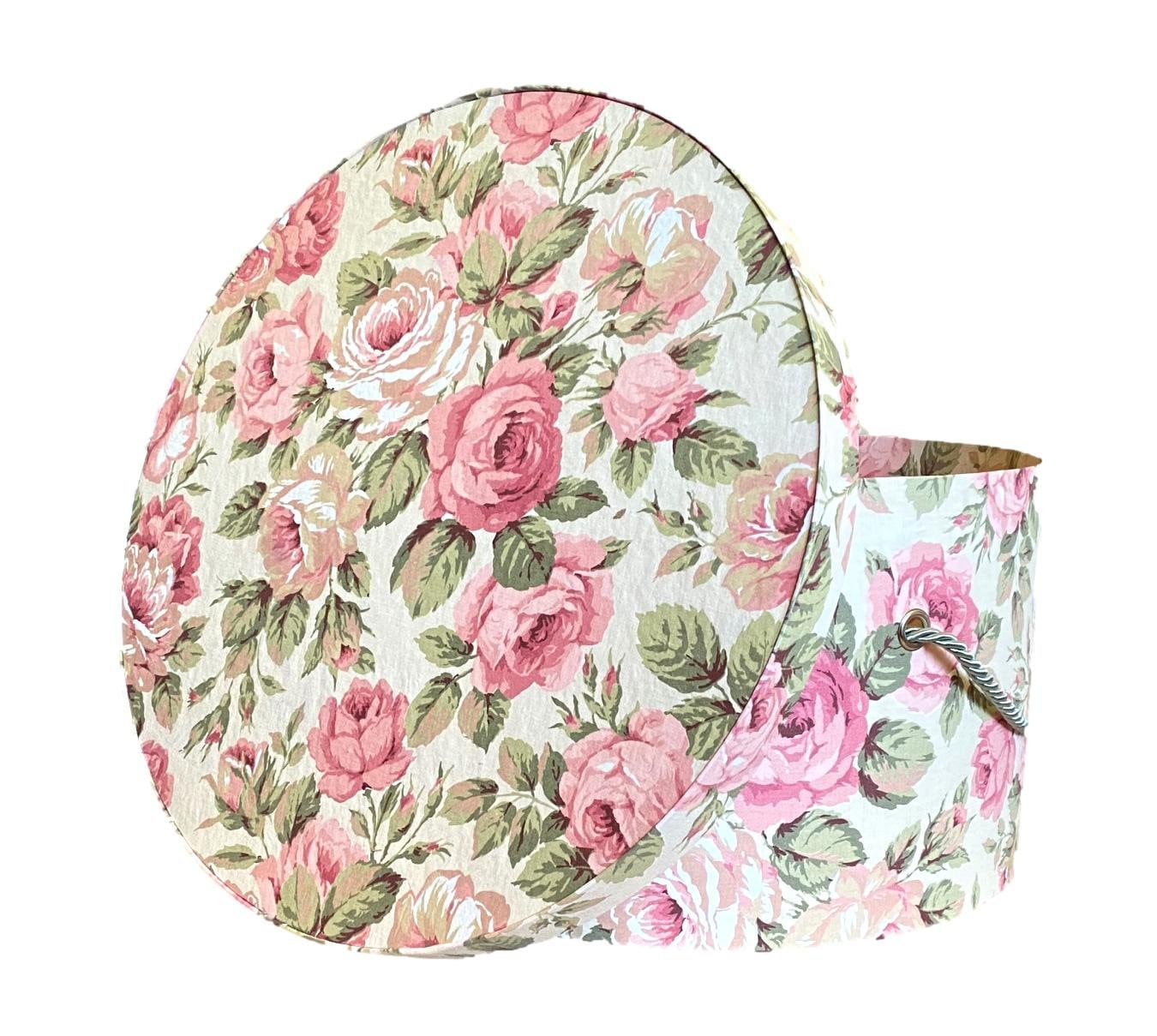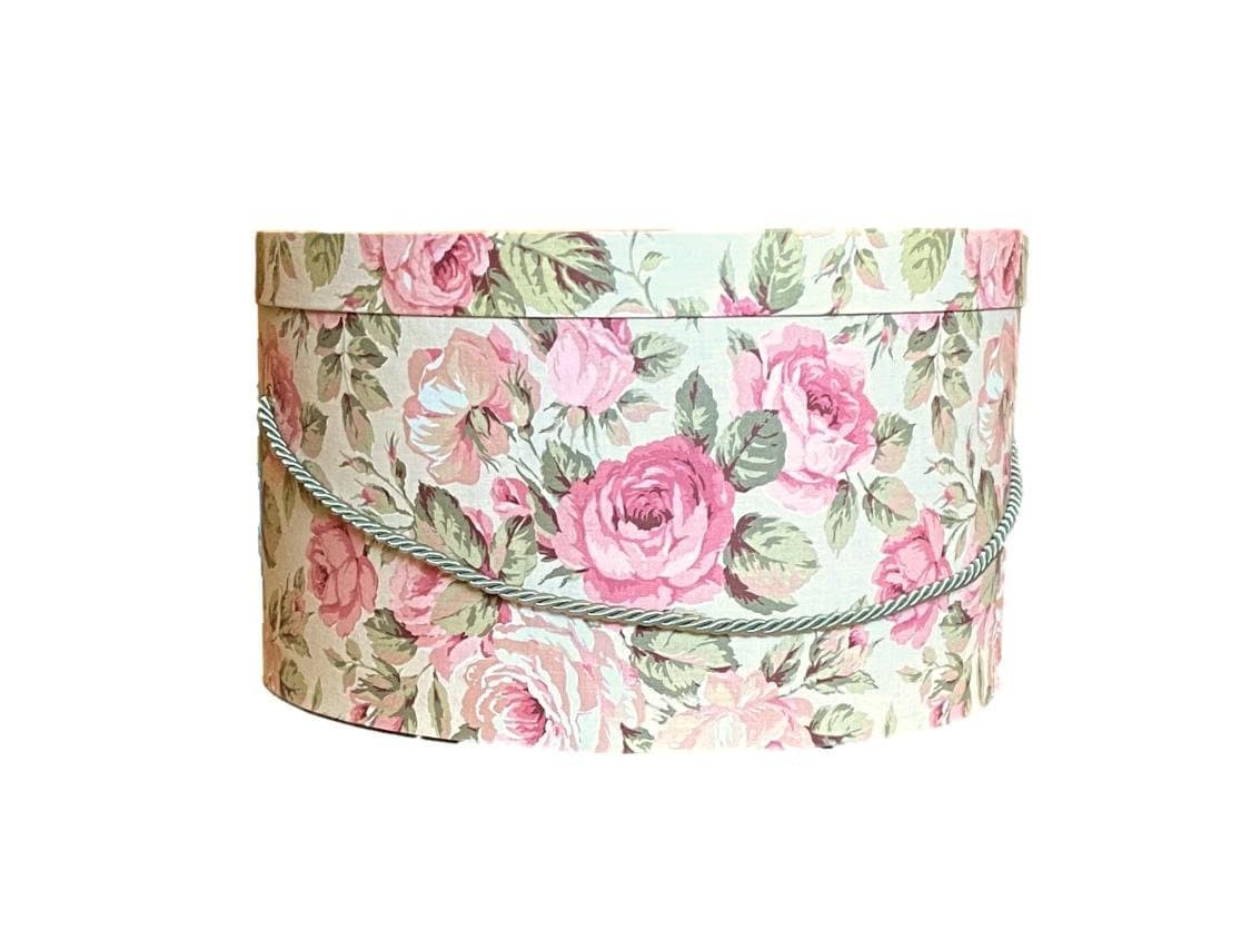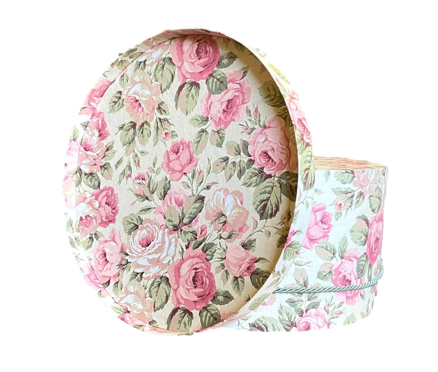 Large Hat Box Pink and Tan Floral Fabric